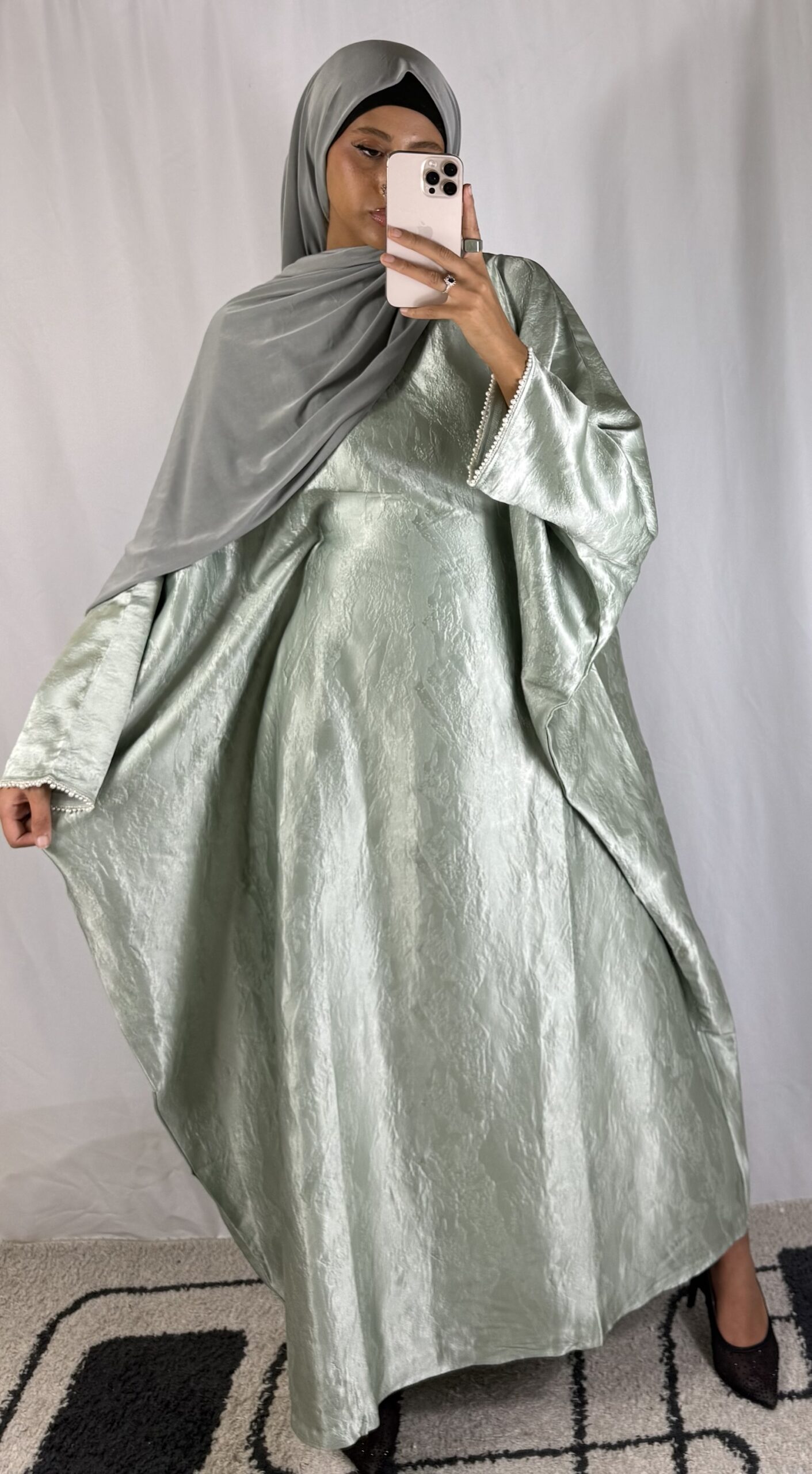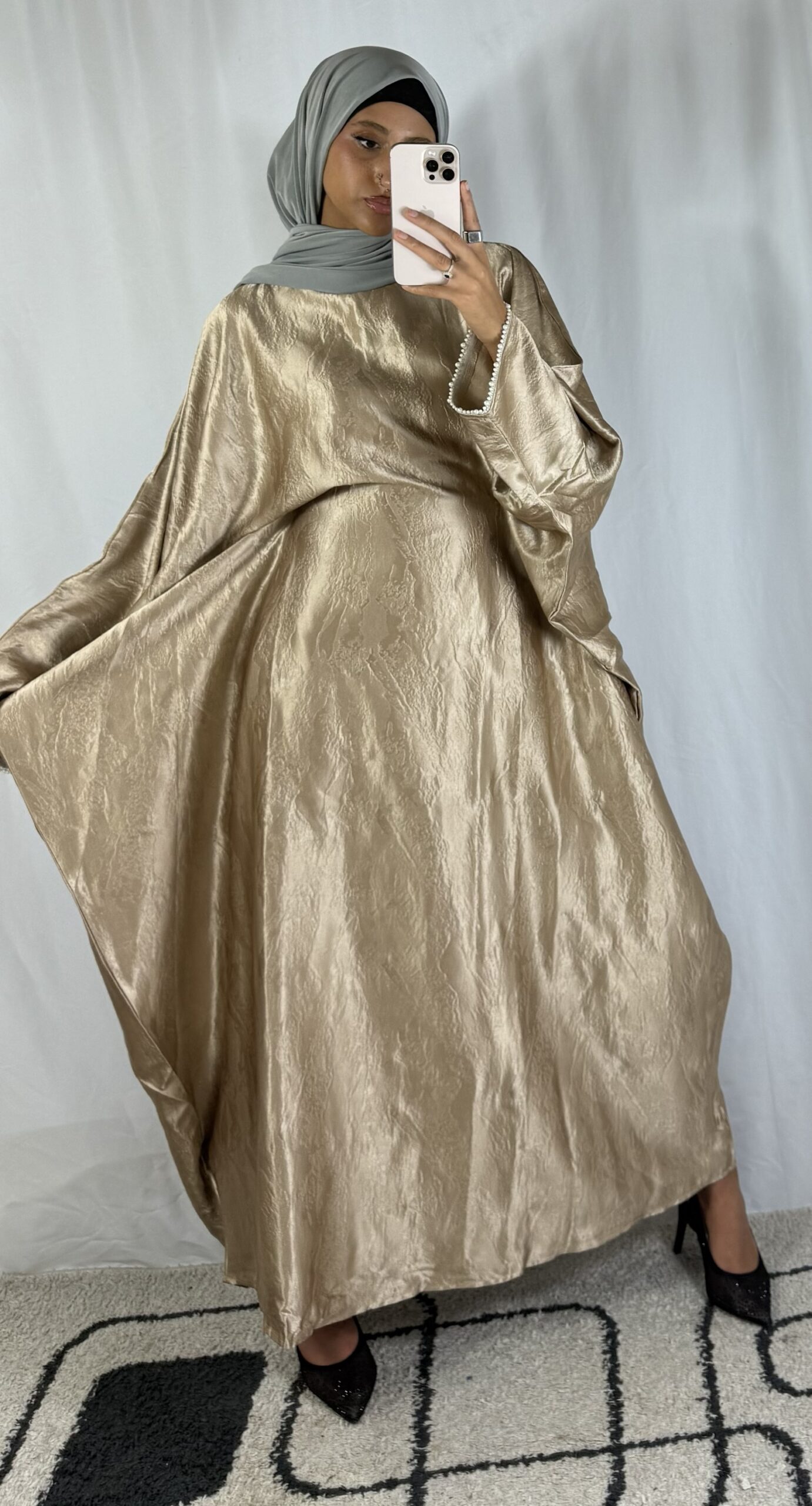 Robe papillon ornée de perles blanches